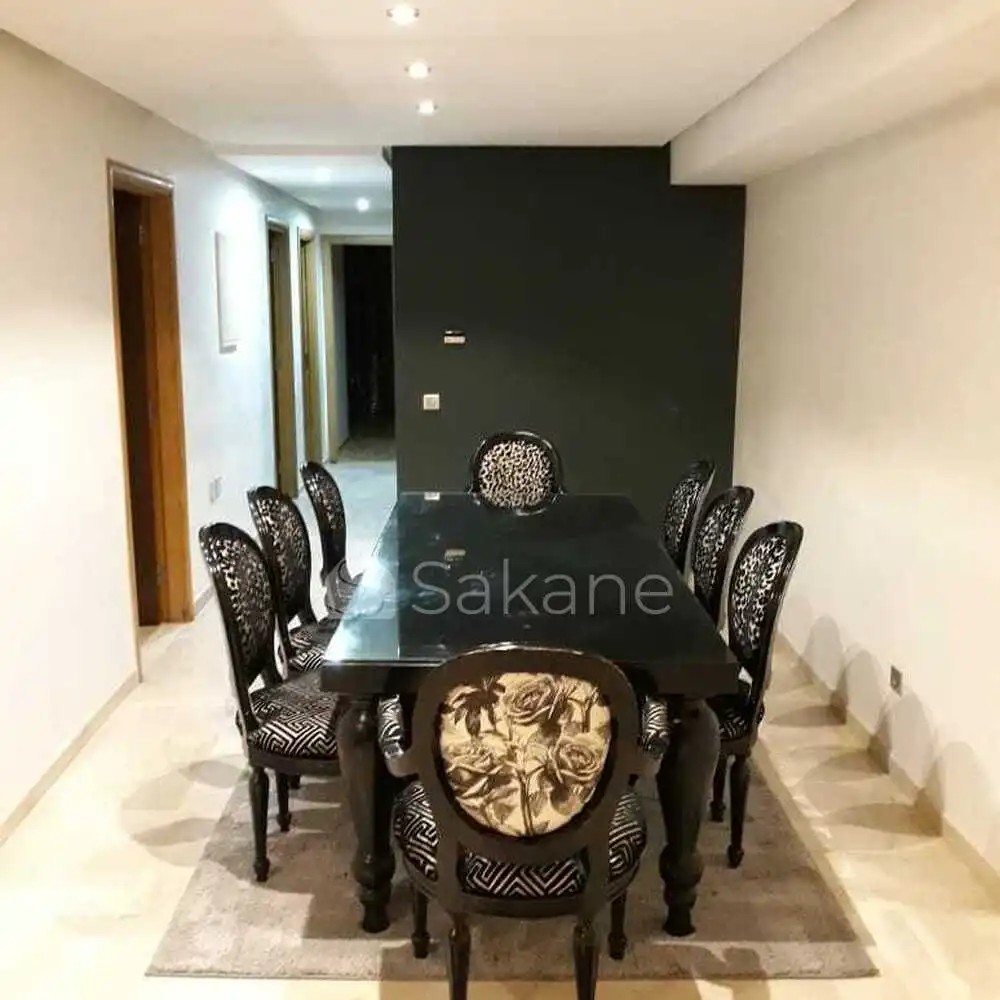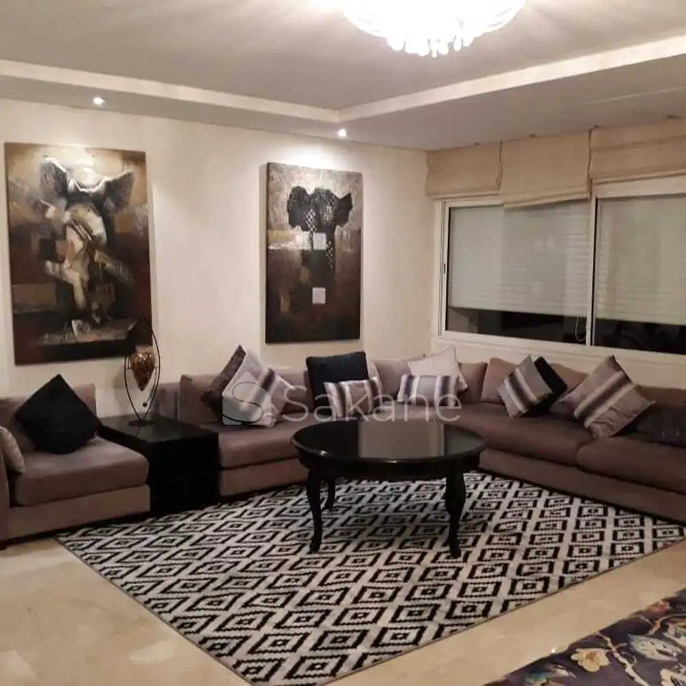 SEFIANI KHADAMAT met en location un bel appartement meublé à PRESTIGIA RABAT qui est situé dans une résidence fermée avec une superficie totale de 177m² et habitable de 160m²