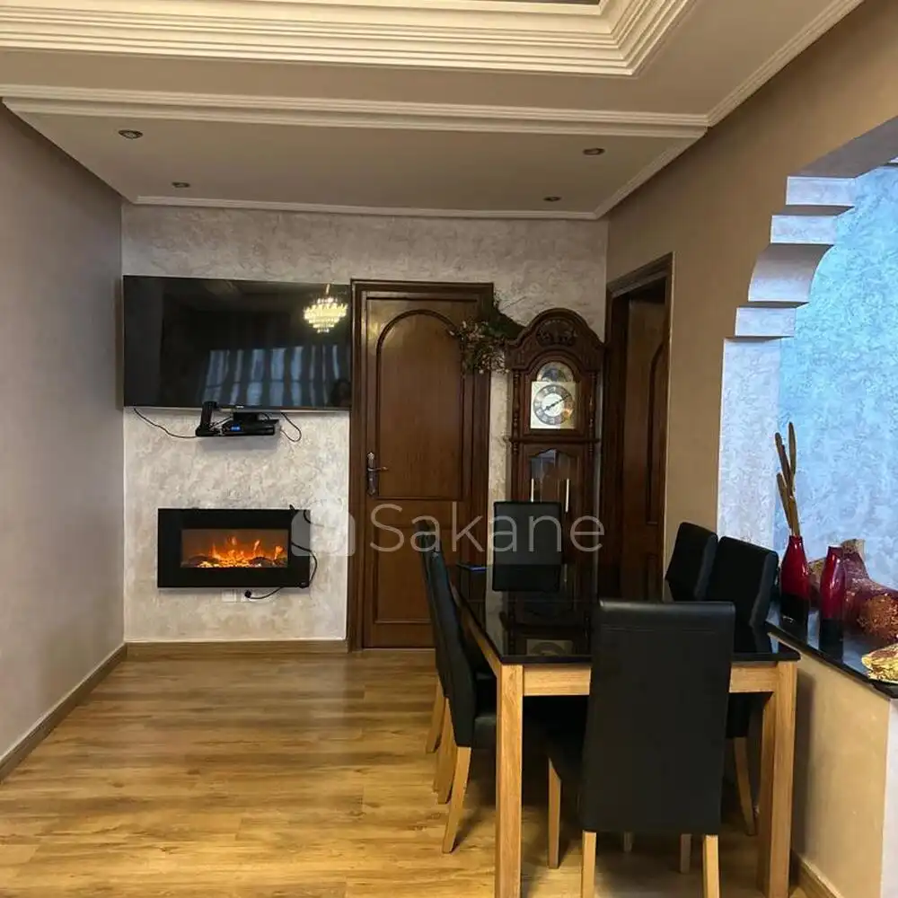 Chambre parentale grand dressing et salle de bain, 2 autres chambres chacune son balcon et une salle de bain en commun. Une sdb invitée coin cheminée, et à manger sallon européen, et grand salon marocain.